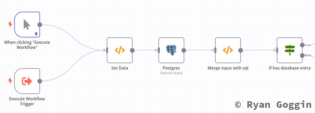 Then create a Postgres - Execute a SQL Query node to check if the task exists in the database. Set the query to the following:
